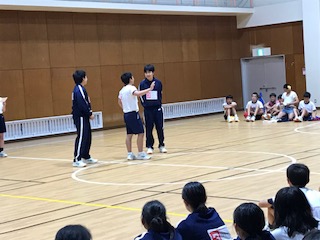 陸上部対柔道部のネタ対決が行われました。どちらも頑張っていましたが、僅差で陸上部が勝利しました、