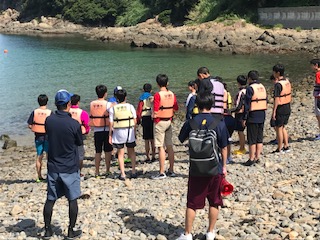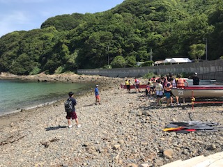 ただ今より、2日目の活動が始まります。カヌー、カヤック、サンドアート、釣りと班に分かれて活動を行います。風もなく、大変良い天気です。