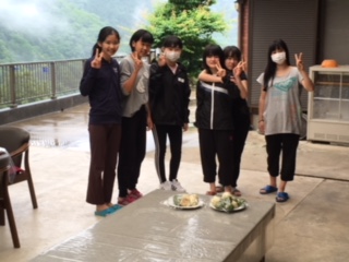 朝からあいにくの雨ですが、本日も山里体験、ラフティング、ホテルでのレクレーションと予定通りの活動を行います。