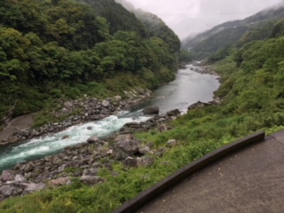 これから吉野川でラフティングを体験します。ただ今更衣中です。この後、スタート地点に移動し、学級写真を撮って、出発します。