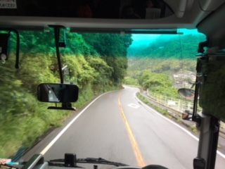ラフティングの活動を無事終了し、予定より少し早く、ホテルかずら橋に向けて出発しました。