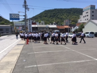 こんぴら散策を無事終え、これからうどんづくり体験に向かいます。