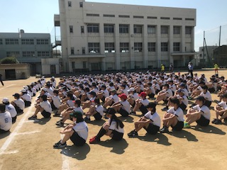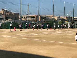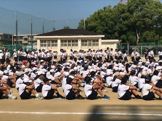 本日1限目、全体練習が行われました。朝から非常に良い天気です。暑さに負けず、一生懸命取り組んでいました。