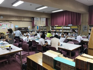 本日放課後、図書室で自主学習が行われました。たくさんのボランティアの方々に来ていただき、学習会が行われました。