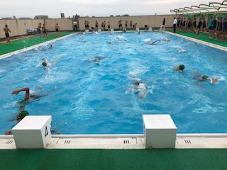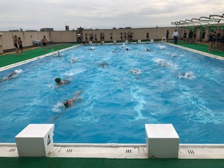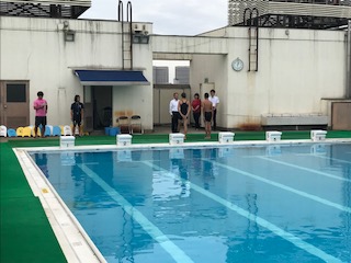 本日5限目、全体体育の授業にて、1年生はミニ水泳大会を行いました。