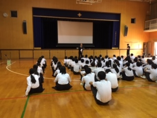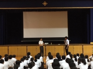10月3日6限目に、阿倍野地区保護司会の皆様に、2年生で薬物乱用防止教室を実施していただきました。薬物に関するビデオを見た後、チャレンジする勇気と断る2つの勇気を持つよう、お話をいただきました。最後に、生徒、保護司会、先生によるロールプレイで、薬物から身を守るための、スキルを養いました。