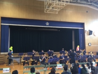 10月20日(土)金塚小学校で、かなづかオータムフェスタが開催されました。14時30分から本校吹奏楽部が、金塚小学校児童や教職員、地域や保護者の皆さんに演奏を聴いていただきました。3年生が引退して1・2年生での演奏でしたが、一生懸命演奏し、多くの方々から大きな拍手をいただきました。