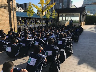本日1年生は、校外学習で信太山青少年野外活動センターに行きます。ただ今、てんしばに集合しています。