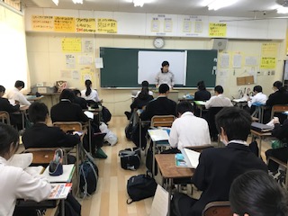 本日1限目、1年1組で、英語の研究授業を行いました。ICT機器を使い、生徒たちにとって、非常にわかりやすく、楽しんで授業に参加していました。