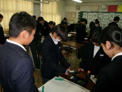 本日6限目、2年3組で席書会を行いました。班で協力して作品を仕あげていました。