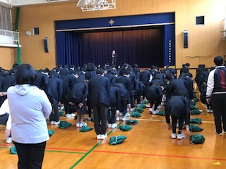 本日全校集会がありました。校長先生より、卒業までの学校での過ごし方についてお話しがありました。また、選挙管理委員会より、来年度の生徒会選挙の告示がありました。