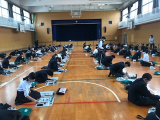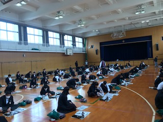 本日5.6限目、1年生席書会がありました。自分で選んだ言葉を真剣に書いていました。すばらしい作品がたくさん仕上がりました。