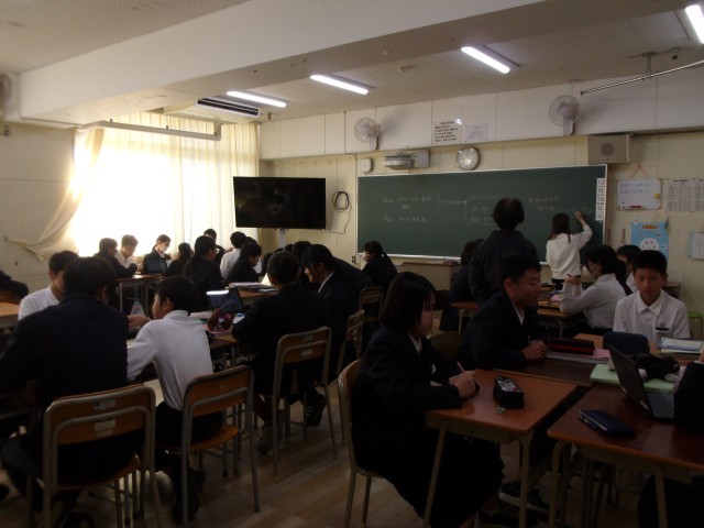 1年1組数学、2組英語の授業の様子です。