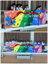 美術部のみなさんが横断幕を完成させてくれました。本日、体育館に掲示しました。あり...