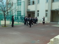 退場した卒業生は中庭で最後の時間を過ごしました。
