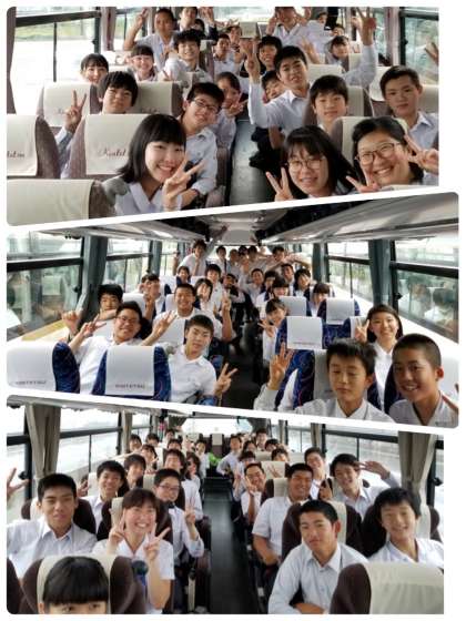 バスの中では各クラス盛り上がっています! 現在、昼食会場「まんなか」へ向かっています。