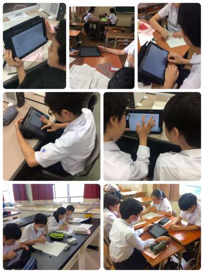 2年生は職場体験学習の発表用にタブレット端末を利用して事業所の写真を選び、取り組みの絵コンテを作成しました。