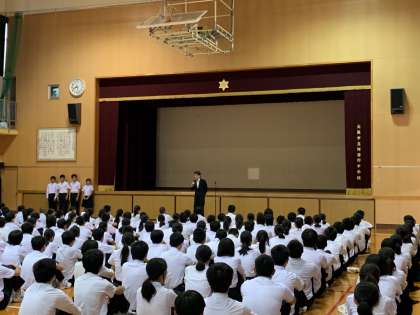 全校集会にて校長先生より『時間を大切に』との話がありました。