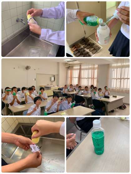 美化委員会では手洗い場、トイレの石けんを補充を行いました。