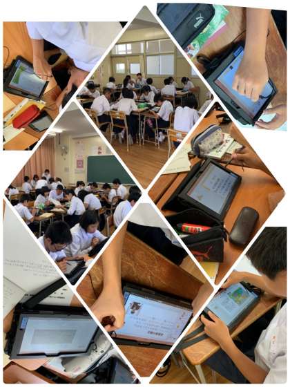 2年生の家庭科では夏休みに調べた生鮮食品についてタブレット端末を使用しまとめています。