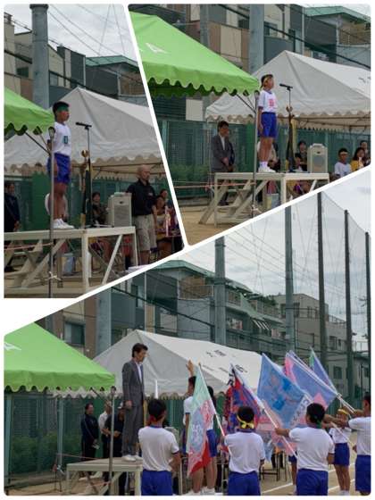 生徒会長あいさつ、競競技上の注意、選手宣誓