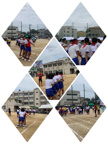 プログラム7 2年生学年競技 むかで競争 5人1組でリレーを行います。