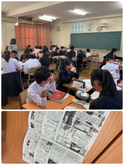1年生の国語では、『故事成語で体験談を書こう!』というテーマでグループ学習を行いました。