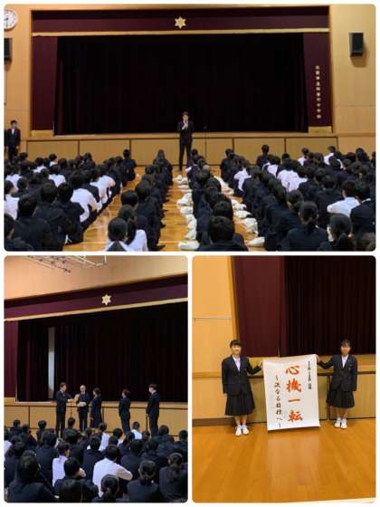 全校集会にて大阪市立中学校総合文化祭で美術作品を発表したみなさんに賞状が伝達されました。