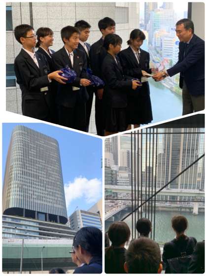 先日生徒会を中心に活動し集まりました募金を朝日新聞社に届けてきました。