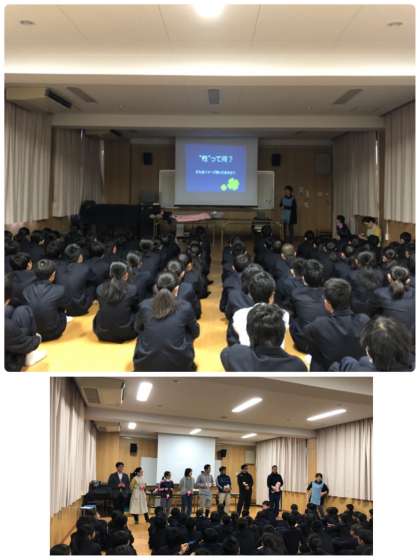 1年では男女共生教育として、浜田病院の助産師、北垣さんから「いのち・性について考えよう」の内容で、ご講話いただきました。
