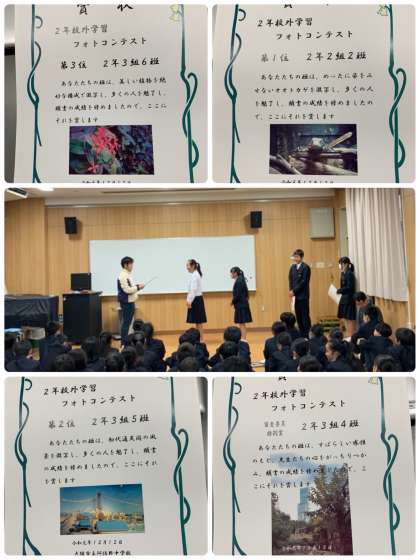 2年学年集会でフォトコンテストの表彰式が行われました。
