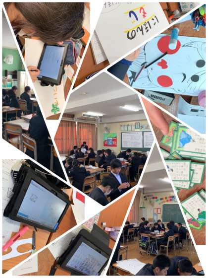 1年生は来週に行われます日本語教室の生徒との交流会のためタブレット端末を使用し、日本の遊びを作成しました。