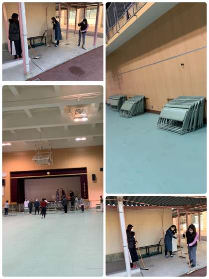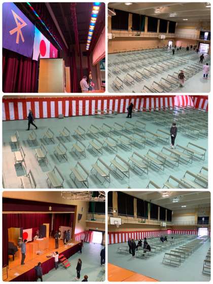 例年卒業式前日に1.2年生のみなさんで行なっている式場準備を教職員全員で心を込めて行いました。