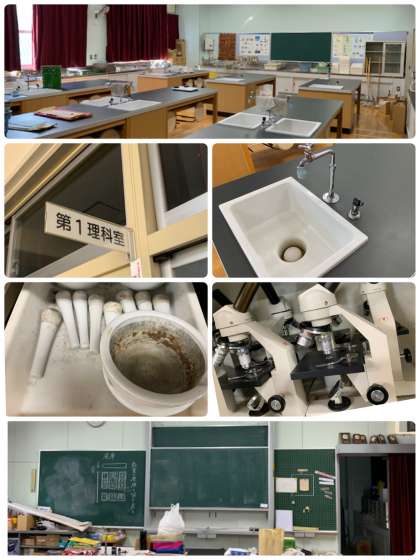 理科準備室をはさんで南側には第1理科準備室があります。こちらにも顕微鏡などの実験器具がきちんと整理されて保管されています。