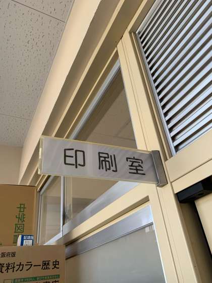 印刷機や帳合機、拡大する機械や電動パンチ、ステープラーなどさまざまな機器が設置されています。