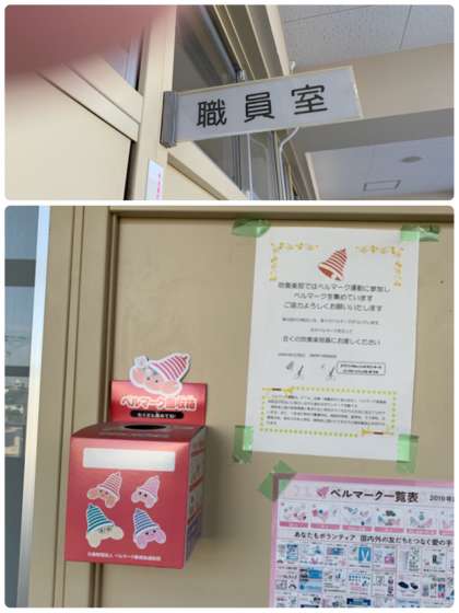 職員室前にはベルマーク回収箱が設置されています。