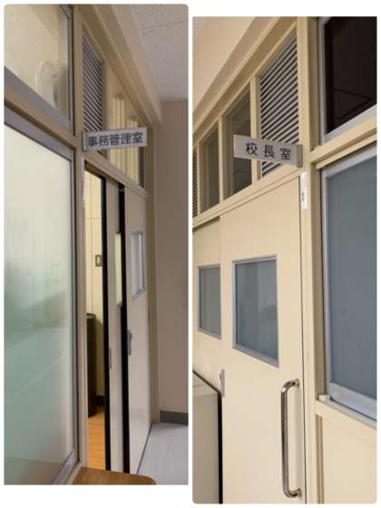 階段を挟んで事務室があります。事務関係の書類はこちらへ。