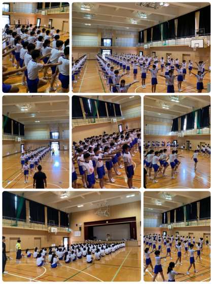 各学年とも2時間を使って入退場、開閉会式の練習を行なっています。