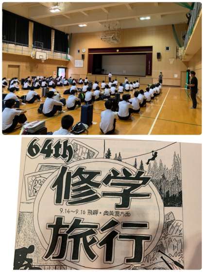 来週月曜から三日間、三年生は修学旅行へ行きます。 最後の説明を行なっています。