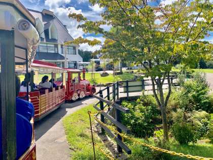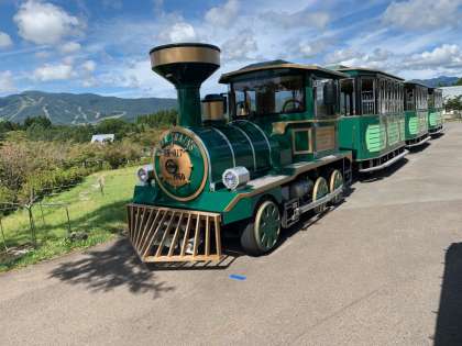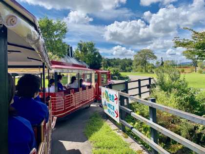 ものづくり班は園内トレーンで移動中。