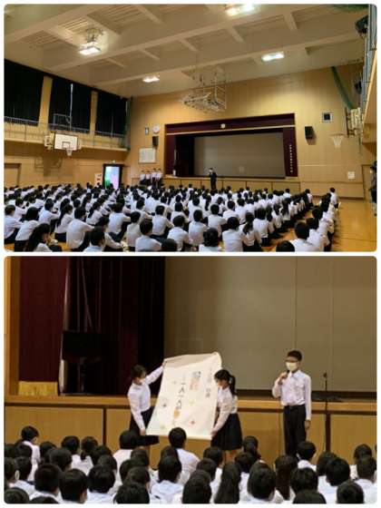 月曜日の朝は全校集会です。 今日は生徒会より10月の目標が発表されました。