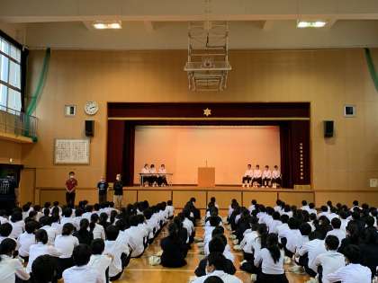 6時間目に後期生徒会の立会演説会が行われました。