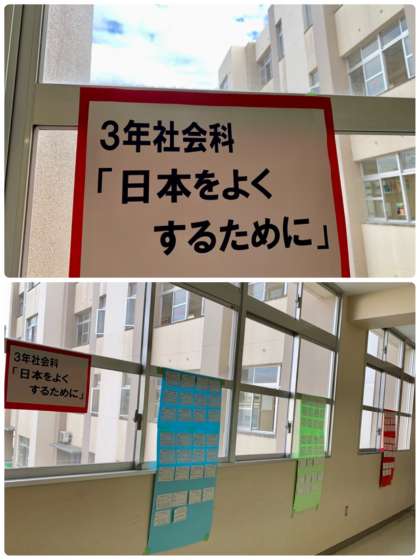 廊下では社会科の展示や文化祭で発表した動画が見ることができます。