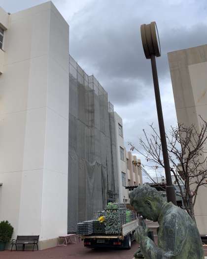 朝から北側の校舎外壁の塗装のために足場が組まれました。