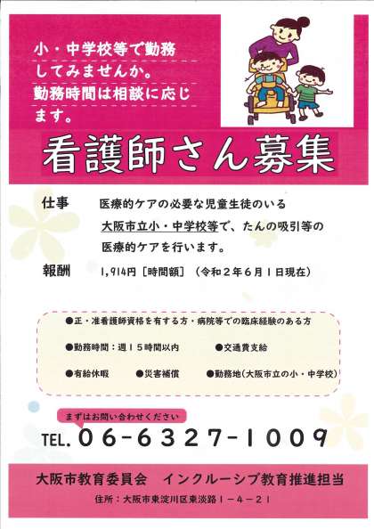 大阪市の小学校や中学校には、たんの吸引や胃ろう、