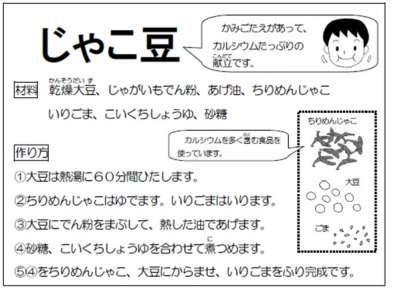 ・鶏肉と野菜の煮もの ・じゃこ豆
