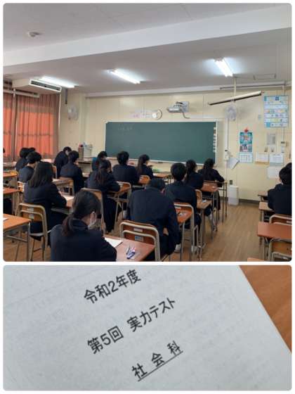 5時間目の社会科のテストが始まりました。 最後まで集中してがんばれ!