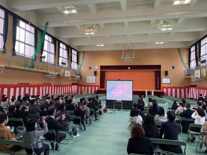 式場では卒業生の3年間の思い出の映像を上映しています。