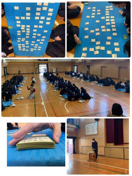 静寂の中、太鼓の音と札をとる音が響いていました!