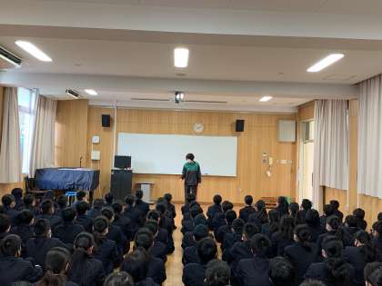 一年生では中学校生活についての説明、学年所属の先生からの自己紹介など行いました。